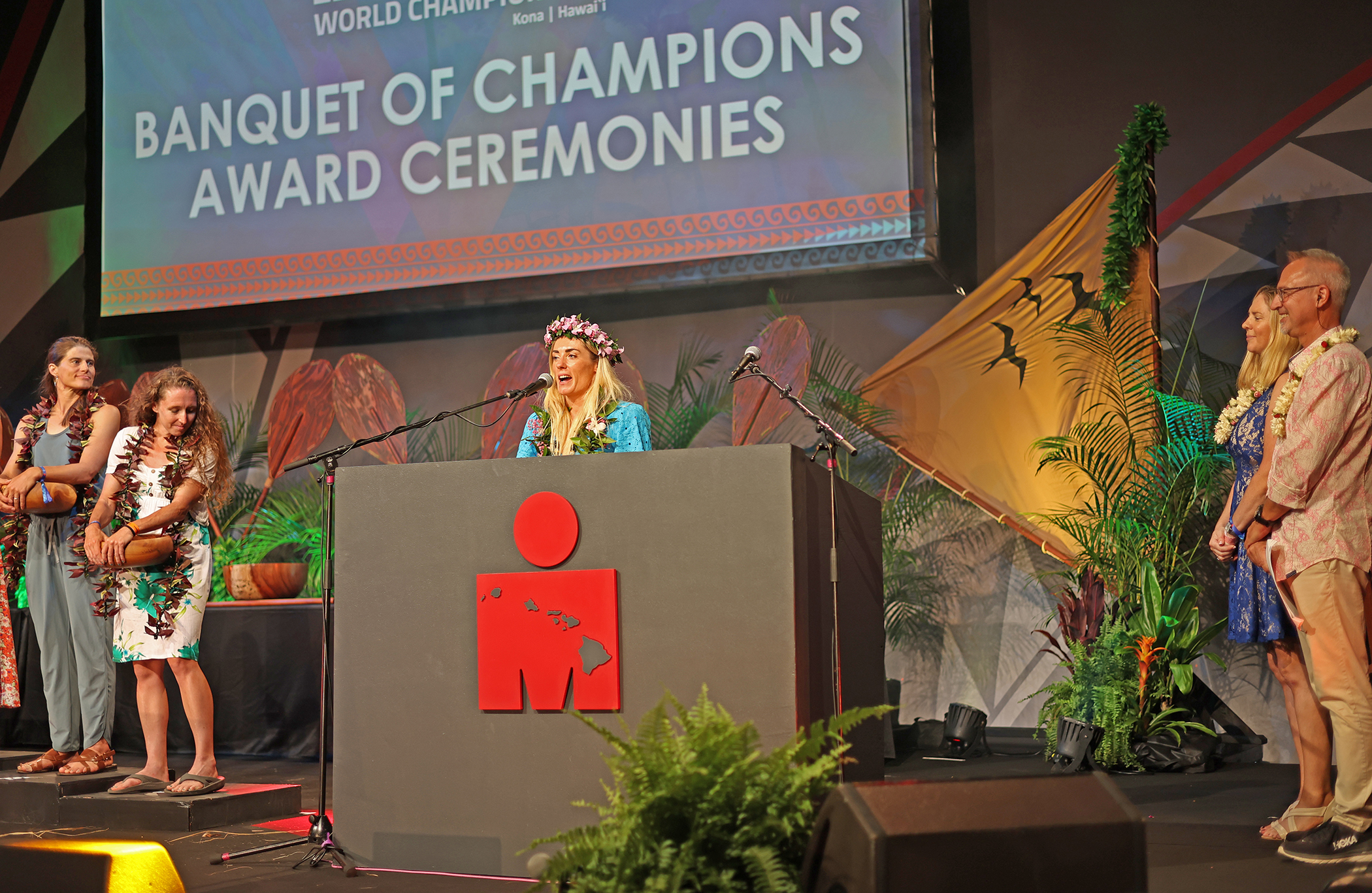2023 IRONMAN World Champion Lucy Charles-Barclay gives her victory speech.