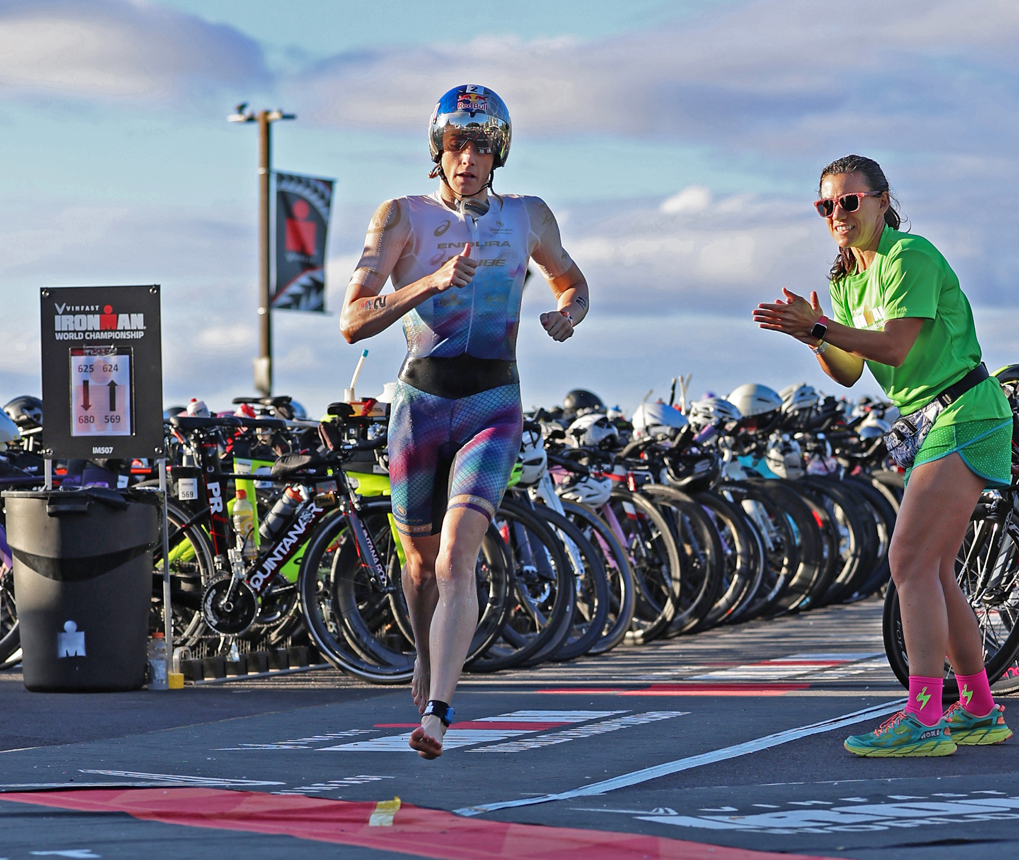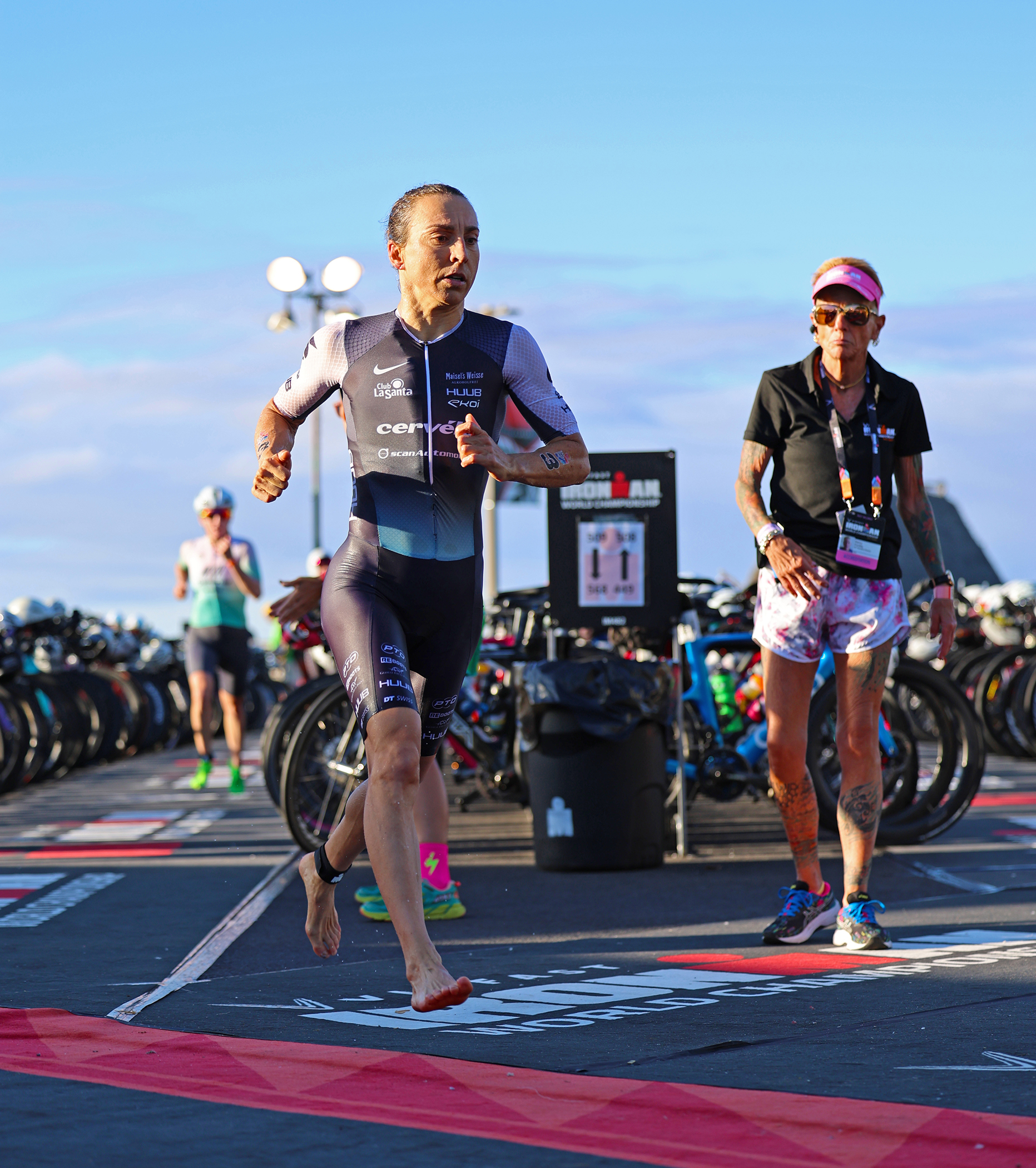 Germany’s Anne Haug in T1. She would end up second, three minutes behind Lucy and with a new run record of 2:48:23.